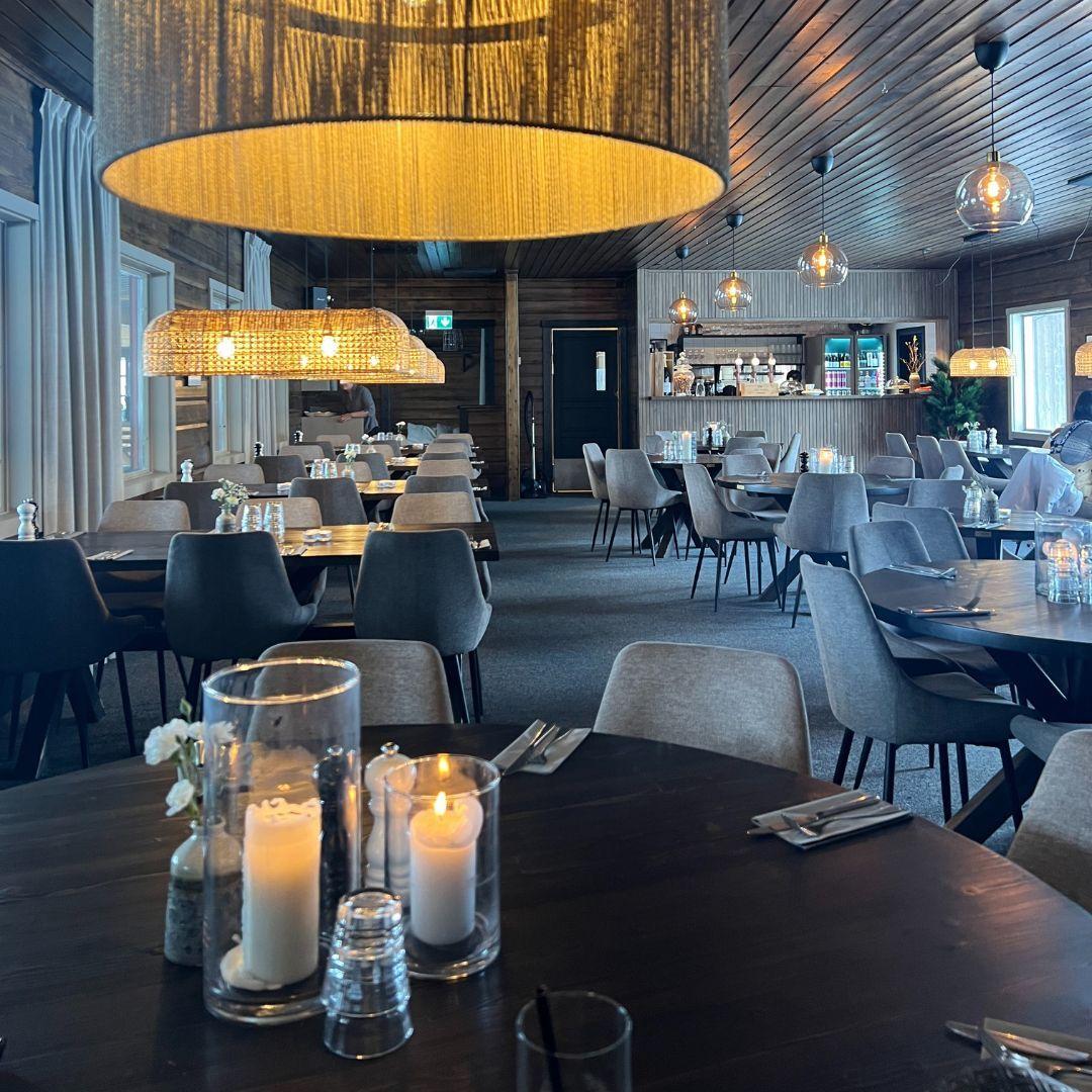 Restauranten har en koselig og luksuriøs fjellfølelse.