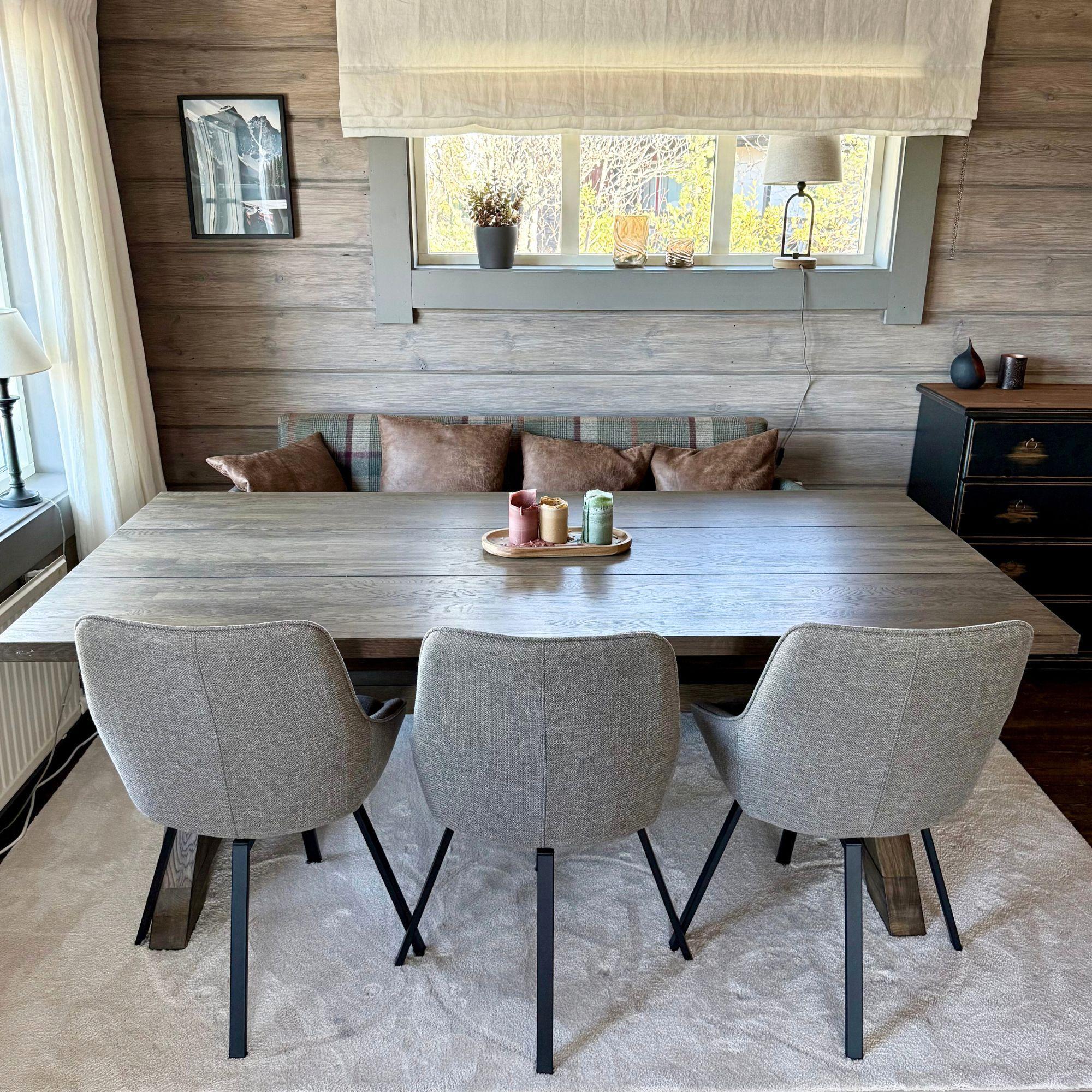 – Spisebordet vi hadde fra før hadde lignende ben, og vi likte det så godt at vi laget vår egen tegning og spurte Rustikunik Design om det var mulig å lage disse, og det var det, sier Emma.
