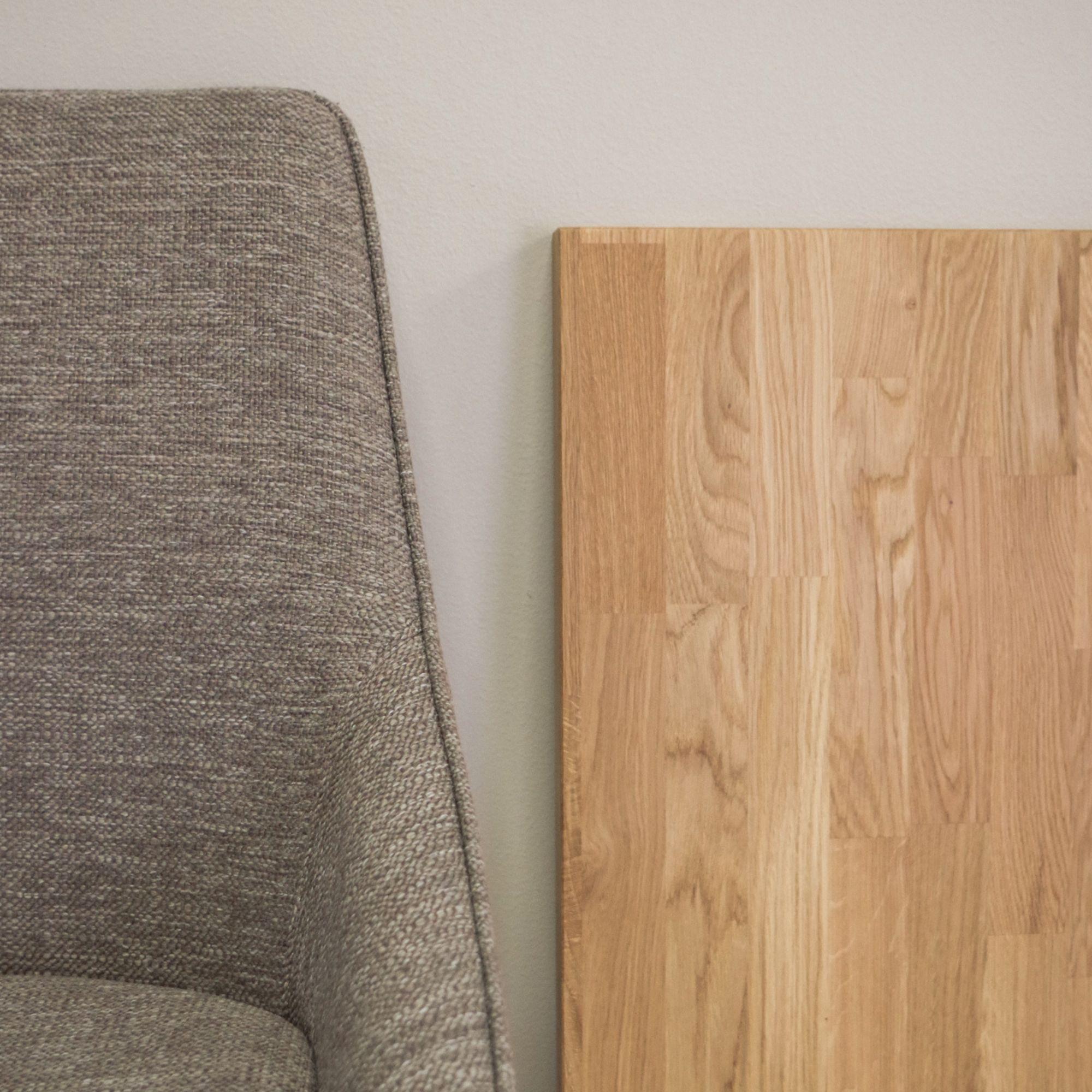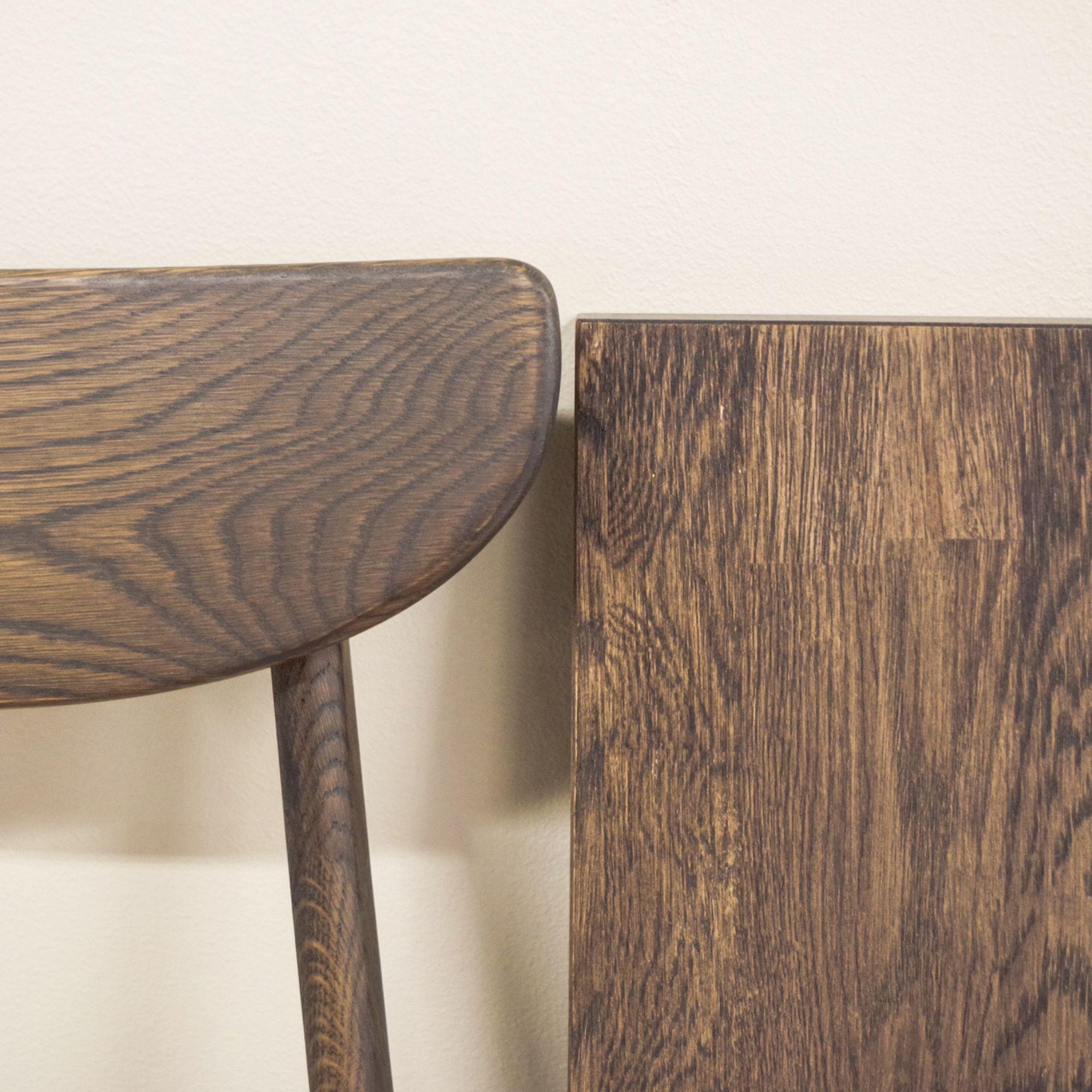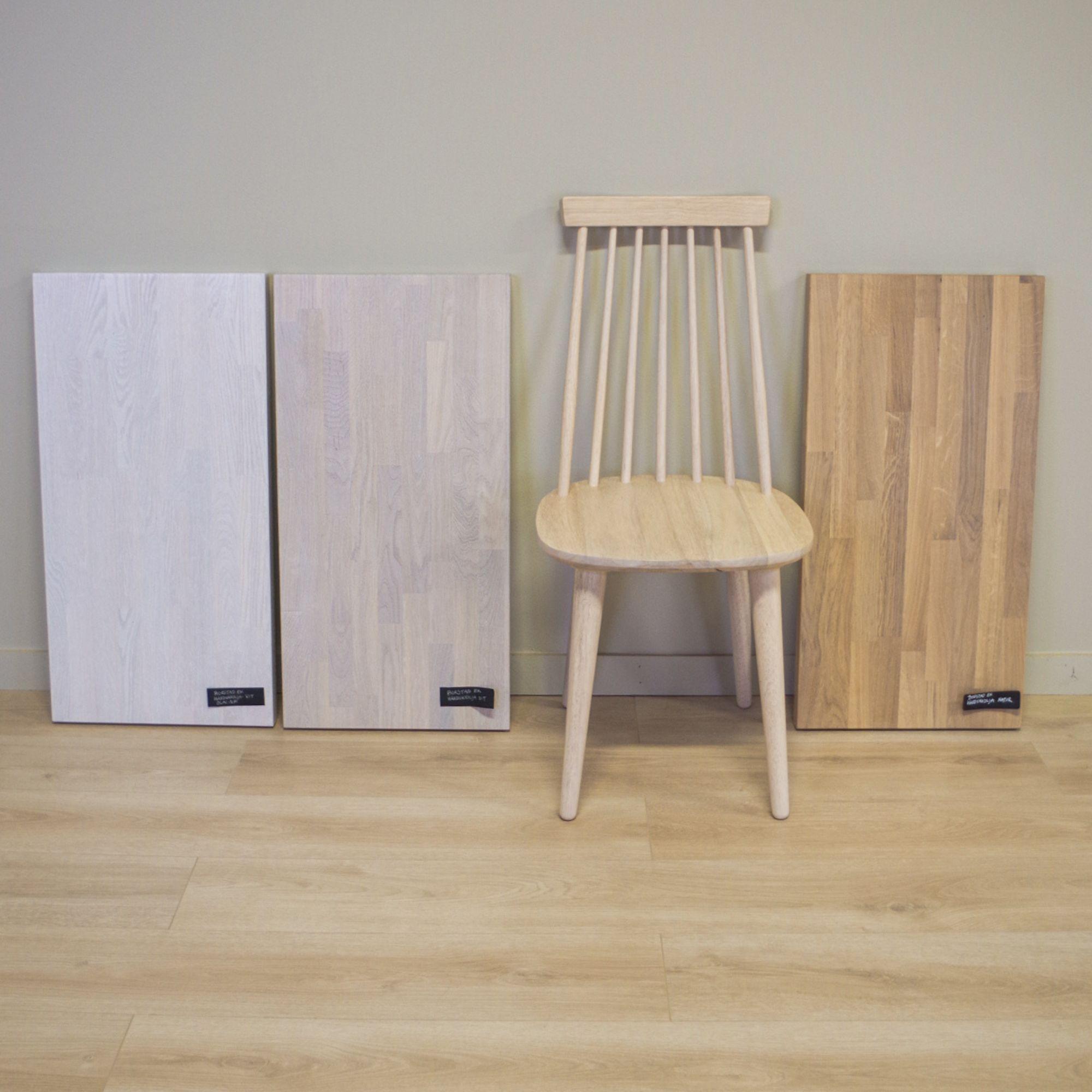 Vi vil også gjerne anbefale våre grå farger i eik. De går i den varmere retningen og fungerer godt sammen med den ufargede eiken i stolene.